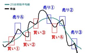 (逆張りは、移動平均線が教えてくれているトレンドに逆らってリスク取って利幅を求める手法です。)