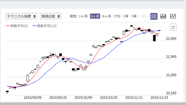 5日移動平均線と13日移動平均線がデッドクロス入り。
