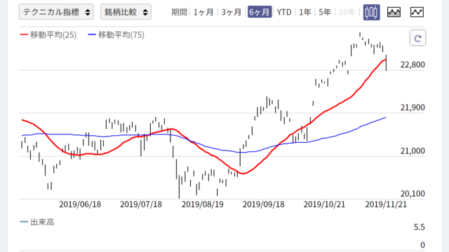 25日移動平均線と75日移動平均線