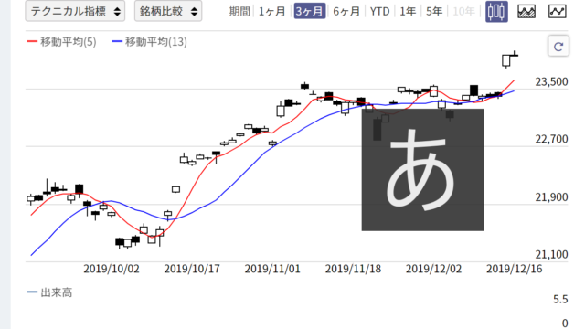 - ローソク足・・・5日移動平均線を超えて陰線。