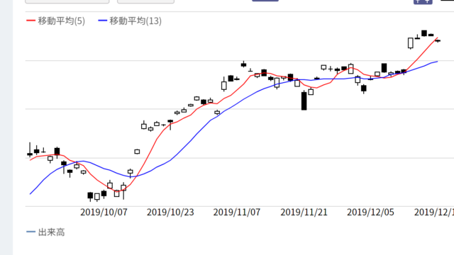 - ローソク足・・・5日移動平均線を潜り陰線。
