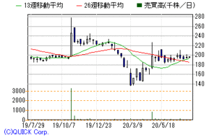 | アルチザ(6778) <東証2部> | 会社概要 通信計測器メーカー。IP電話や携帯の基地局・交換機向け強み。5G向けも受注。 業種 電気機器 会社URL https://www.artiza.co.jp/<業績推移>(億円)※1株益・1株配は円 ![]() ![]() 決算期 売上高 経常益 最終益 1株益 1株配 発表日 2018.07 23.4 -6.7 -8.6 -106.2 0 18/09/06 2019.07 26.3 0.7 1.2 14.6 0 19/09/05 2020.07(予) 32.4 3.0 2.6 32.0 6 20/06/04 前期比(%) +23.2 4.5倍 2.3倍 2.2倍PER 58.9 PBR 4.09 配当利回り 0.32% 決算月 7月 |