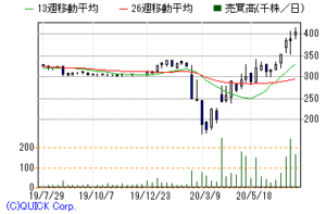 | ブロッコリー <2706> [JQ] | ★3-5月期(1Q)経常は4.2倍増益で着地 ◆21年2月期第1四半期(3-5月)の経常利益(非連結)は前年同期比4.2倍の2.5億円に急拡大して着地。劇場版「うたの☆プリンスさまっ♪」の収益配分金を計上したことが寄与。「うたの☆プリンスさまっ♪」関連のゲーム、CD、ロイヤリティ、トレーディングカードゲームといった好採算商品の販売比率が上昇したことも利益を押し上げた。 ●単独PER(21/02期予想ベース) 業績予想:CON(※)18.05 倍●単独PBR (最新実績ベース)1.23 倍●単独ROE (20/02期実績)4.030 %●一株通期配当 (21/02期予想ベース) 配当予想:会社(※)26.00 円●配当利回り (21/02期予想ベース) 配当予想:日経1.96 % ![]() |